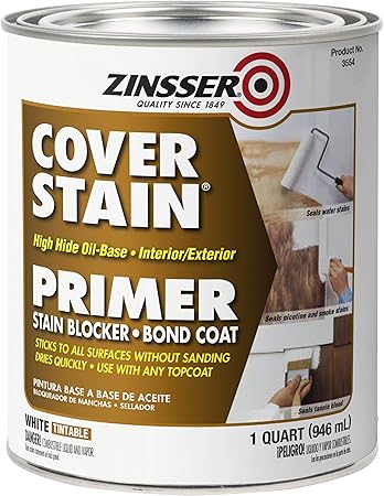 Zinsser 03504 Cover Stain InteriorExterior Oil Primer Sealer 1-Quart White 45 out of 5 stars 233 Rust-Oleum 3609 White Zinsser Cover-Stain Water Based Primer 16. Zinsser Cover Stain is an oil-based primer Ive used a lot over the years for priming cabinets exterior wood and wall stains.